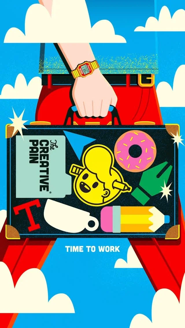 Constantly exploring the balance between clarity and curiosity, Tyler Pate’s work under The Creative Pain transforms the struggles of creativity into bold, nostalgic worlds of optimism and grit. Through vibrant color, sharp storytelling, and meticulous detail, he turns the highs and lows of the creative process into art that celebrates perseverance, imagination, and play.